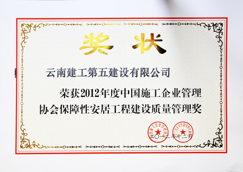 2012年12月,公司榮獲2012年度中國施工企業(yè)管理協(xié)會保障性安居工程建設(shè)質(zhì)量管理獎。