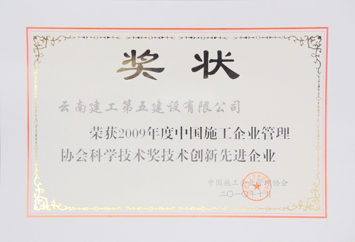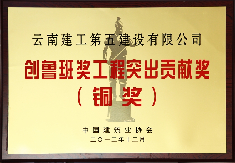 2012年12月公司榮獲中國建筑業(yè)協(xié)會(huì)頒發(fā)的創(chuàng)魯班獎(jiǎng)工程突出貢獻(xiàn)獎(jiǎng)(銅獎(jiǎng))。