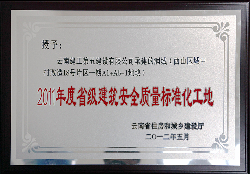 第五直管部承建施工的潤城(西山區(qū)城中村改造18號(hào)片區(qū)一期A1+A6-1地塊)工程獲“2011年度省級(jí)建筑安全質(zhì)量標(biāo)準(zhǔn)化工地”稱號(hào)