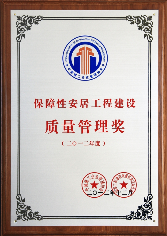 2012年12月,公司榮獲2012年度中國施工企業(yè)管理協(xié)會(huì)保障性安居工程建設(shè)質(zhì)量管理獎(jiǎng)。
